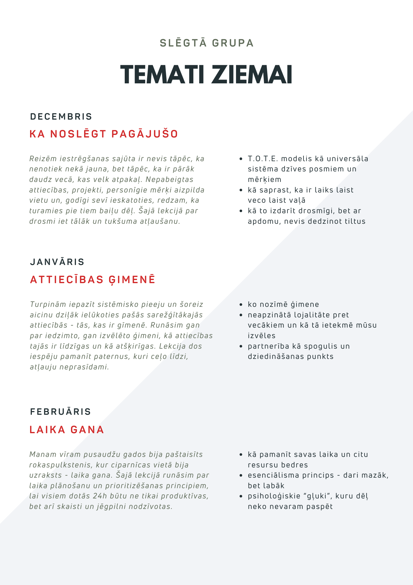 Šī ziema ir slēgtās grupas noslēdzošais cēliens. Te temati, ko esmu Tev sagatavojusi!